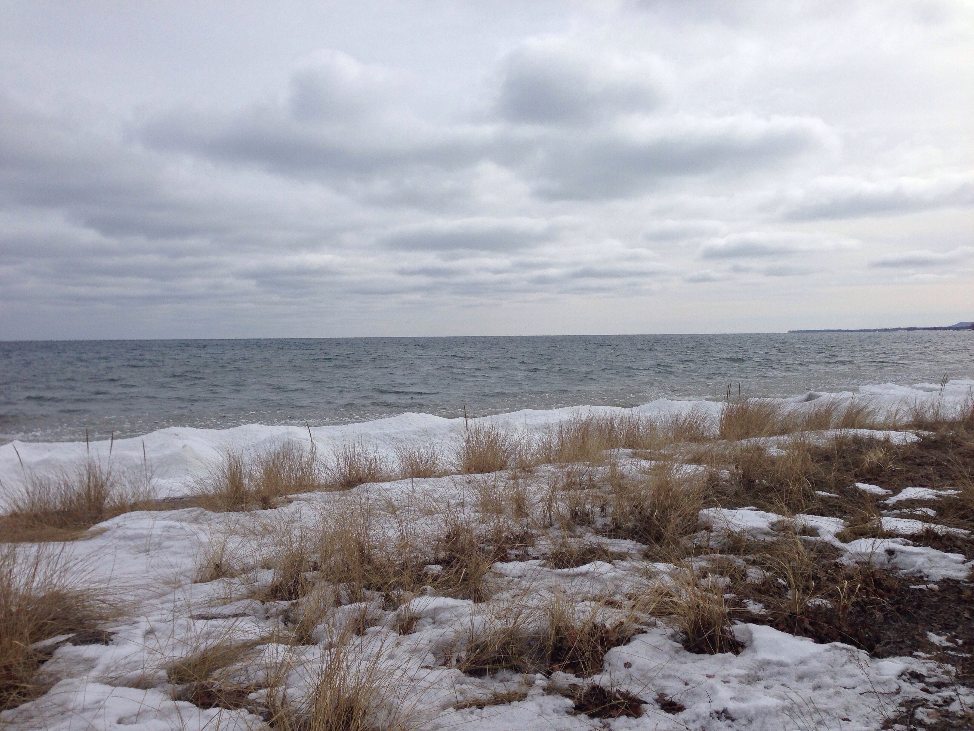 On the other side of the province, I stand today on the westernmost point of Lake Ontario looking east. The long grass and wet, packed sand whispers promises of summer, beach fun. The boulder size blocks of ice at the shoreline recall the harsh reality of the winter that is slowly passing. The shadows of light reflecting against a thinly veiled high-cloud announce the warmth that will soon embrace us, once again.
