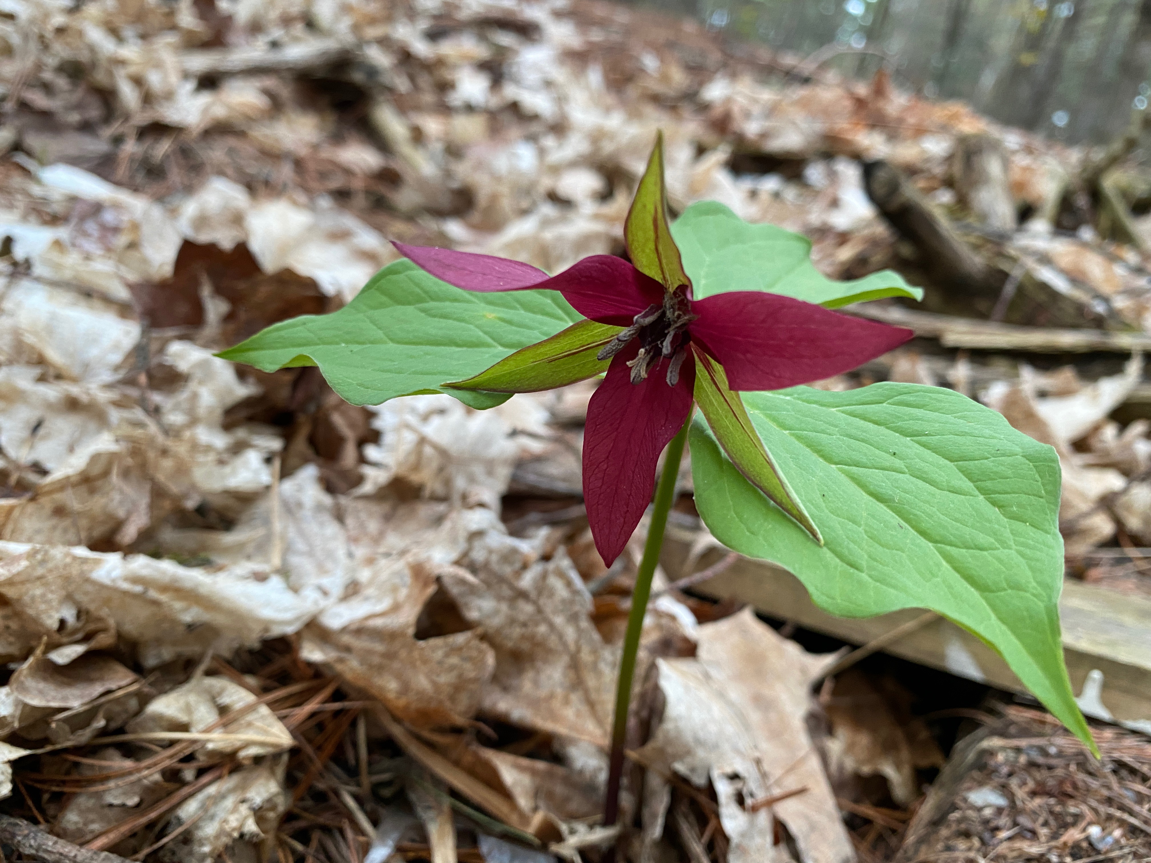 Last week Jessica and I were walking through the Grove in Arnprior. And we found a rare woodland flower amidst the stand of old growth Alders, Pines and Hemlock trees. Red trilliums are hard to find and spot. They take a long time in the ground—five to seven years—to germinate before producing the rich, dark-red flower.