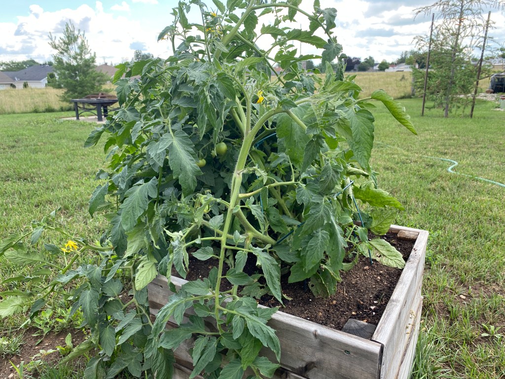 Tomato plants require abundant water. Before the recent rains, I was out pretty much every evening watering our one tomatoe plant in a small raised bed. It concerned me, in the heat and dryness of the past couple of months, when I missed a day or two in a row. I was worried that I wasn’t doing my part to ensure a healthy yield at the end of the summer.