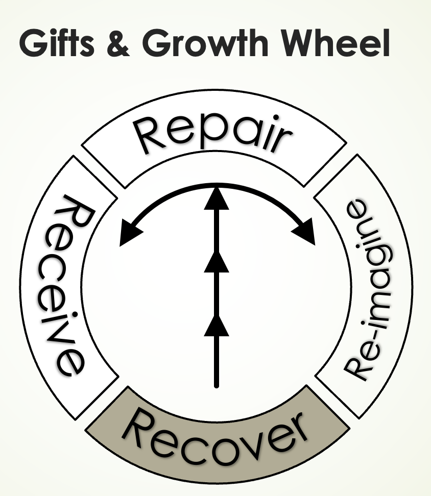 For growth to happen, Recoverers have to cross the centre of the Gifts and Growth Wheel. Healthy Recoverers reflect this commitment to action, which Repairers are especially good at. But, for Recoverers, it is an action that serves another from the heart, the source of divine love.