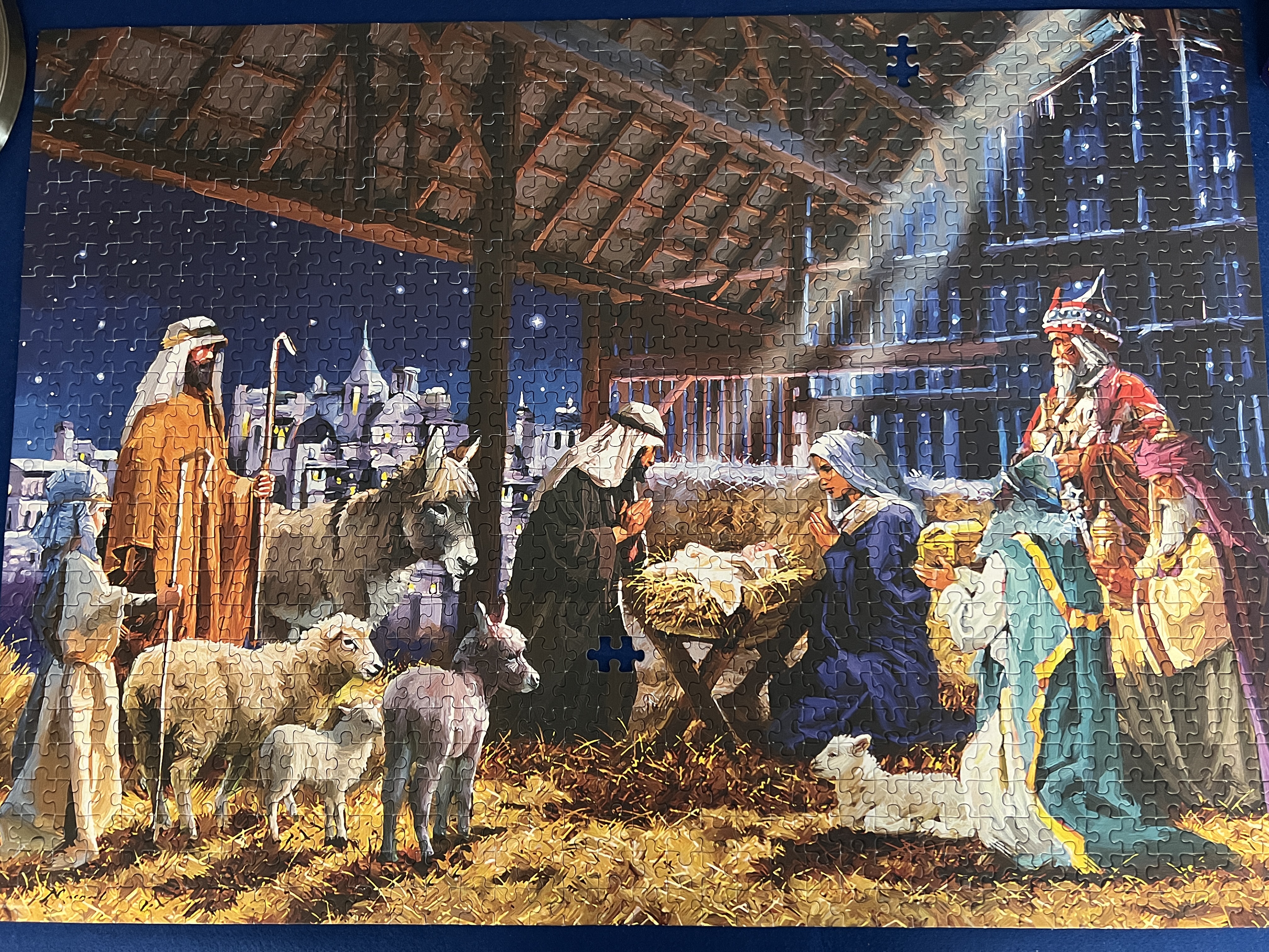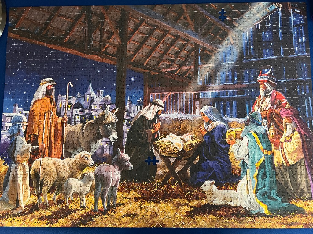 It is finished! The 1000-piece nativity puzzle is now done. Thank you to all who contributed – whether you fitted only one piece or sat for hours in the narthex over the past month and a half, putting it all together. It is complete.